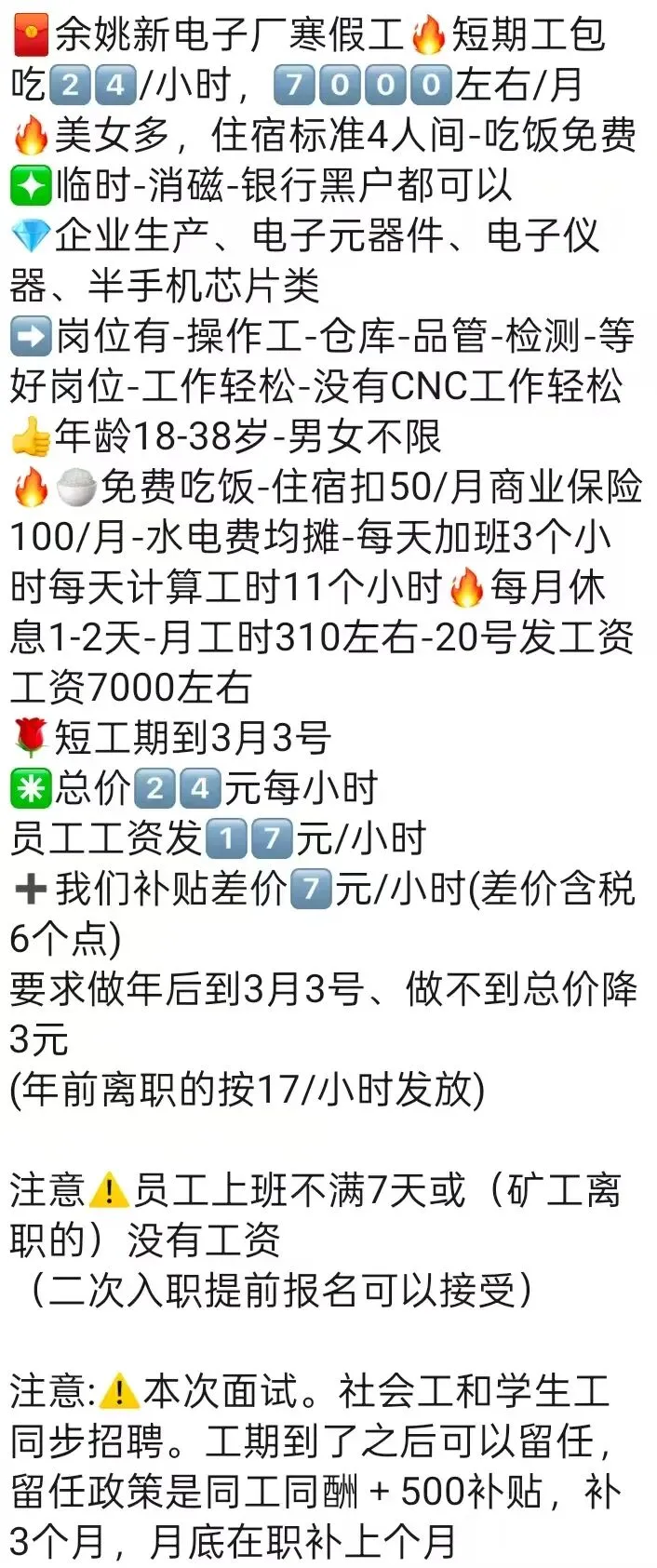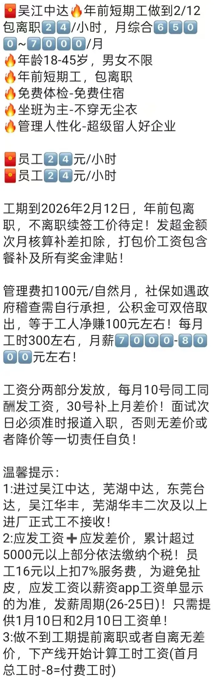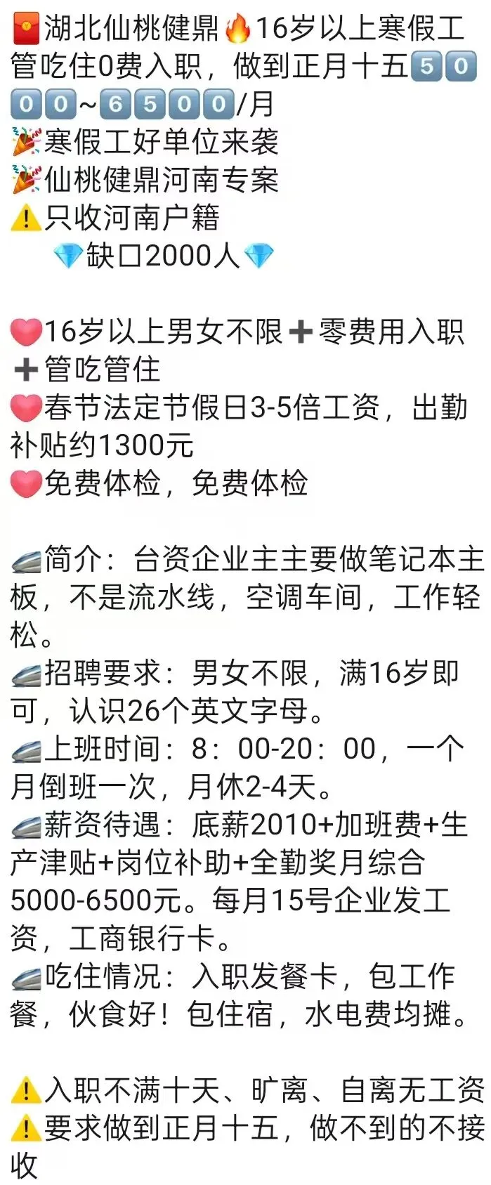 ‼🙅不要短期工、日结工,员工离职需提前申请,请勿自离、旷离、急辞,否则无工资!