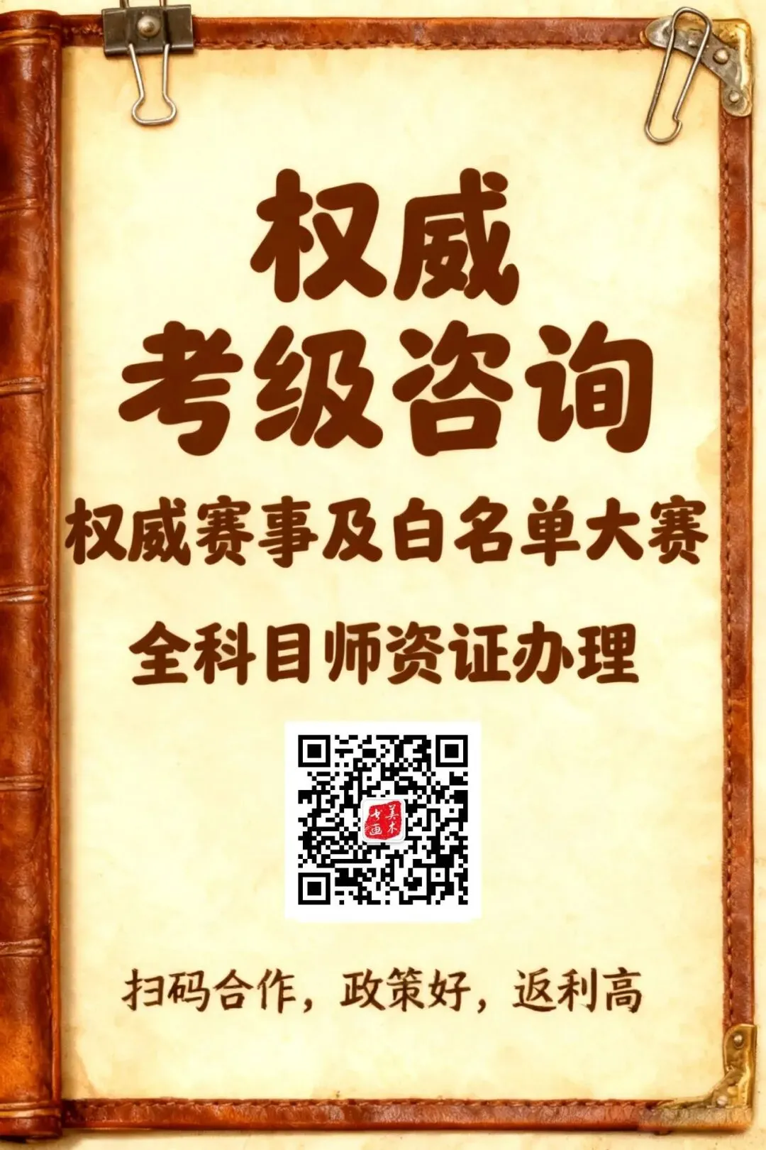考级结束后,将对考级通过者颁发由文化和旅游部人才中心监制的文化和旅游部人才中心社会艺术水平考级证书。