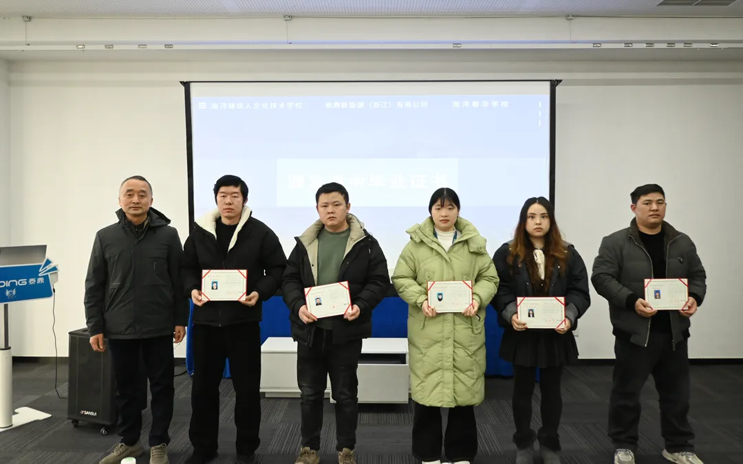 展望未来,泰鼎新能源将继续深化与南浔成校、春华学校等院校的合作,不断优化“学历+技能”双提升培养体系,丰富教学资源供给,为员工搭建更广阔的成长平台。公司将始终坚守人才培养初心,持续打造高素质、专业化的员工队伍,为企业高质量发展注入源源不断的动力,为南浔经济开发区产业升级贡献泰鼎力量。