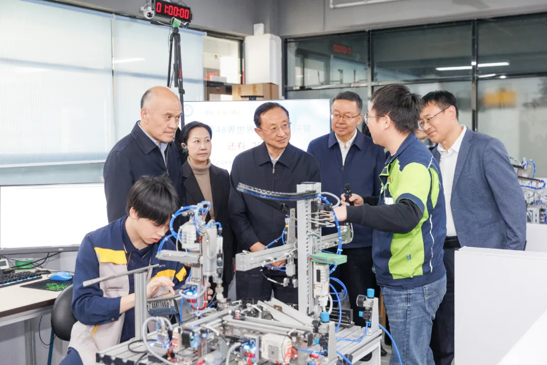 如何让顶尖选手的“光环”照亮更多学子?面对调研组的关切,学院吴洪东院长介绍了“世赛成果转化”的机电方案:将竞赛标准转化为教学标准,将选手训练方法融入日常培养体系,推行“一试两证”,并孵化出多个校企合作项目,真正实现了“以点带面”,让世赛技能惠及每一位学生,精准对接国家对于战略型、创新型高技能人才的迫切需求。