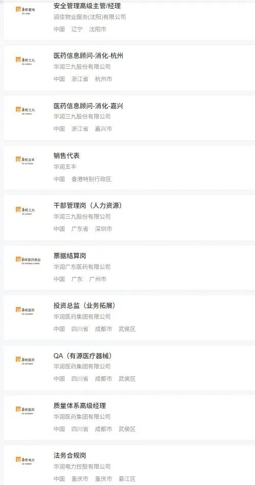核心运营中枢:北京(集团总部 / 医药商业)、深圳(华润置地 / 金融),聚焦战略决策与高端岗位,接触行业顶层资源。