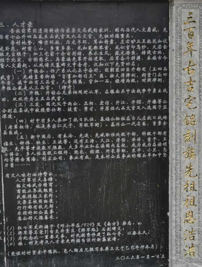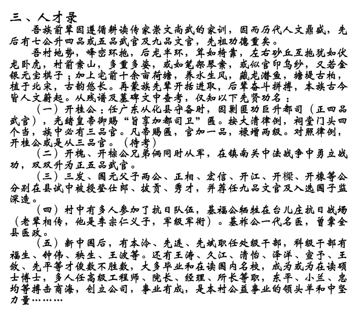 (4)族、村史考及人才录史料摘自该村新纂家谱。