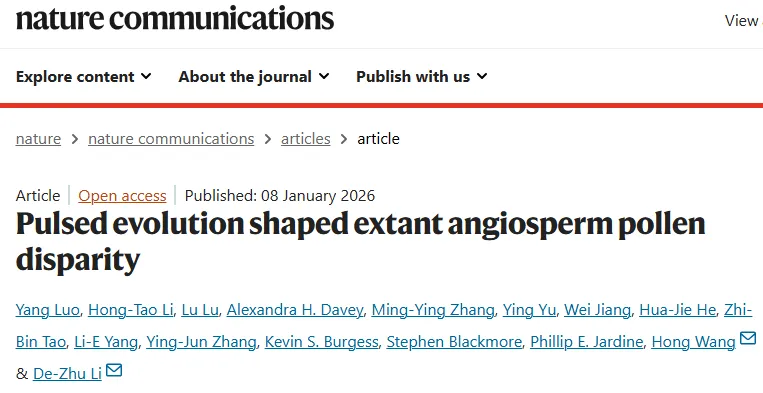 这项题为《Pulsed evolution shaped extant angiosperm pollen disparity》的研究已在线发表于《Nature Communications》。论文第一作者为中科院昆明植物研究所骆洋博士,王红研究员与李德铢教授为共同通讯作者。