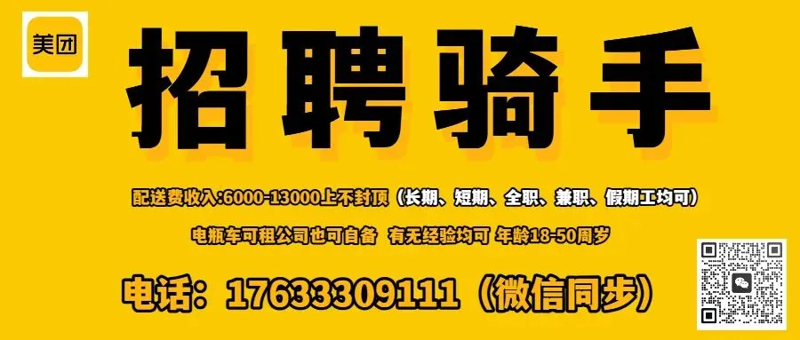 底薪2000➕200全勤➕送单提成(5元一单)➕推广提成,综合薪资5000-7000,有送外卖经验优先,公司提供电动车,无任何押金!工作时间白班上午11点到晚上10点,晚班下午5点到凌晨2点,(全职轮流一个星期白班)