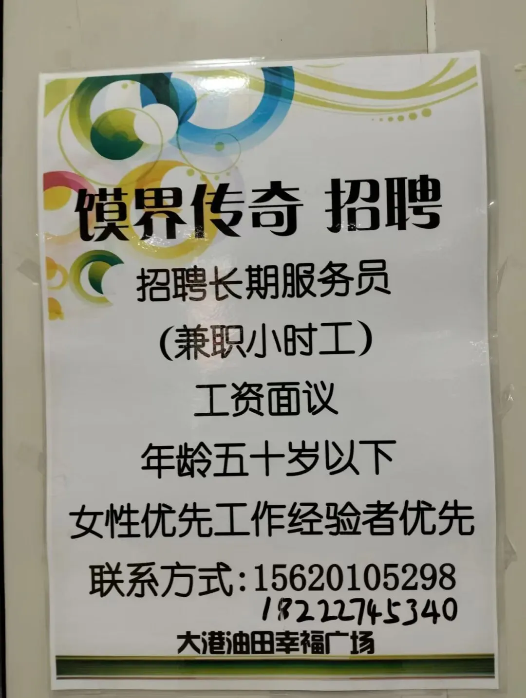 服务员,男女不限,全天、半天均可