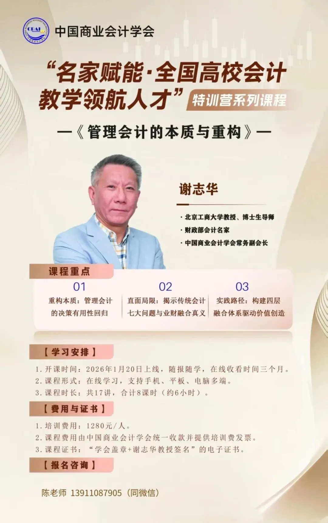——谢志华教授《管理会计的本质与重构》课程的通知