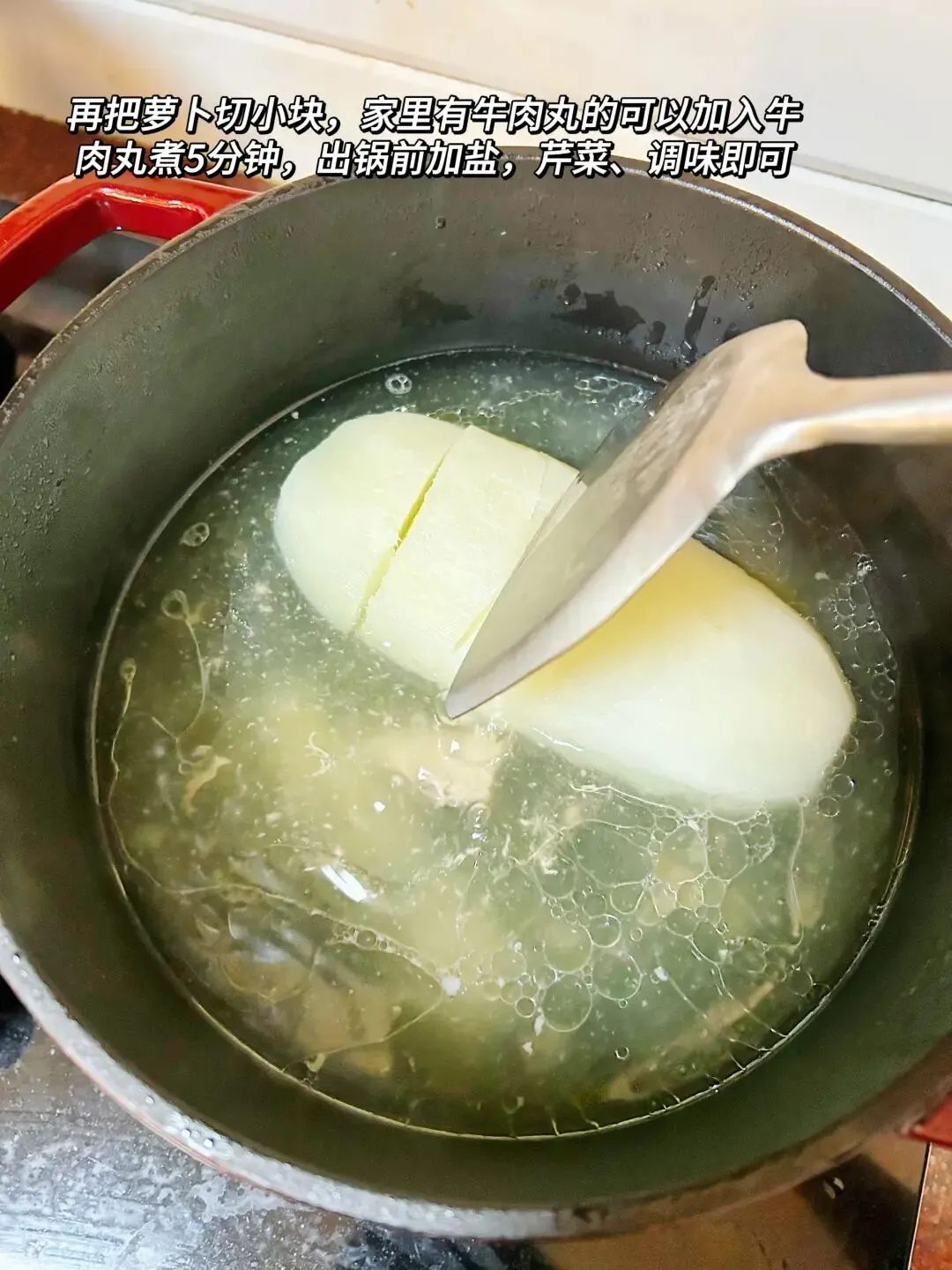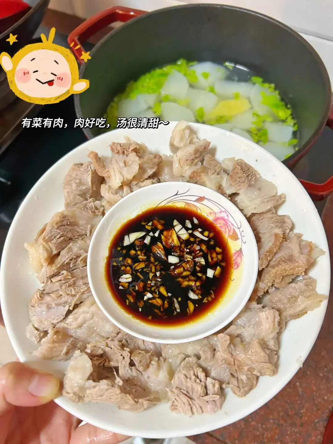 做法:白萝卜去皮,所有食材清洗干净(⚠️萝卜不切块)倒入锅中加入清水大火烧开转至小火煲40分钟,捞出梅头肉晾凉切片,再把萝卜切成块(家有牛肉丸可以加入再煮5分钟更美味),在加入芹菜碎、盐、胡椒粉调味即可