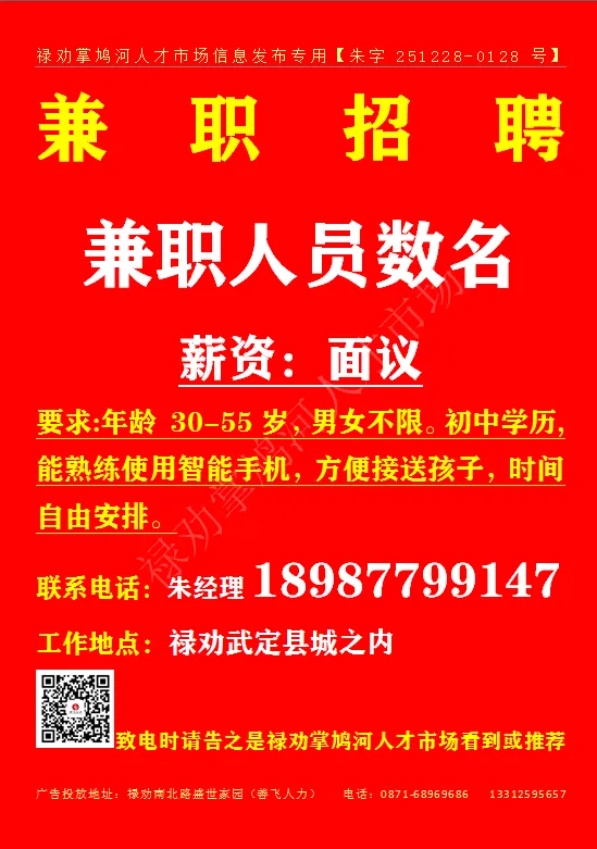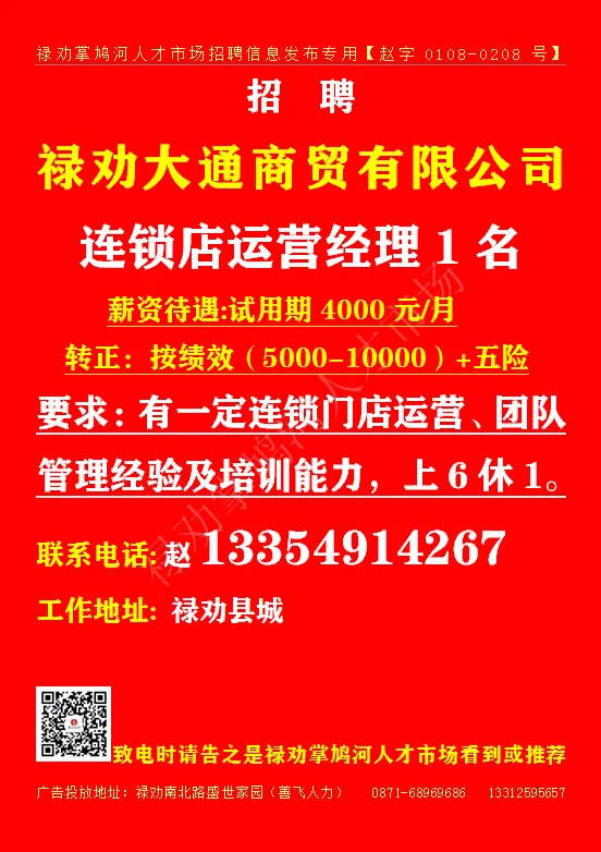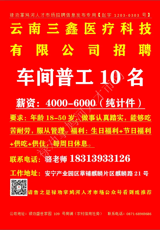 致电时请告知是禄劝掌鸠河人才市场看到或推荐