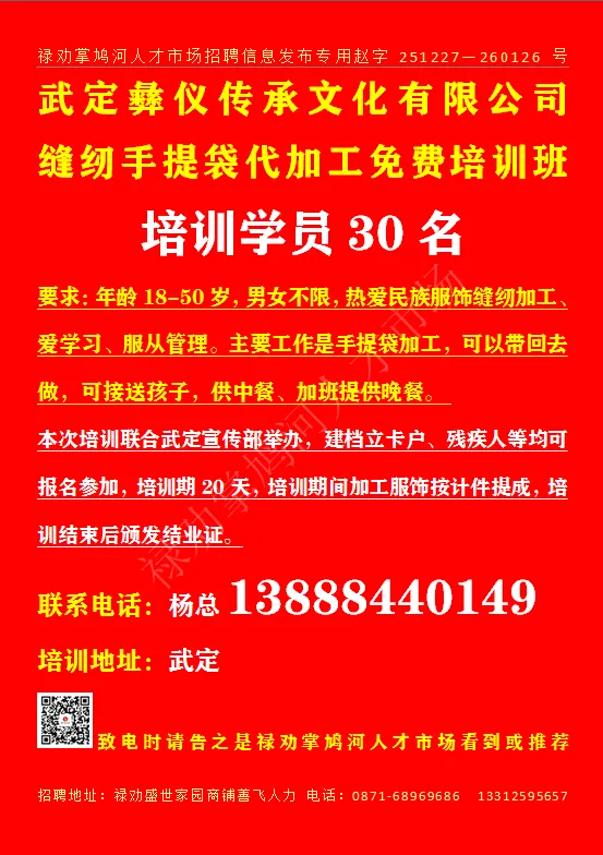 工作地址:禄劝彝城新都刺绣街