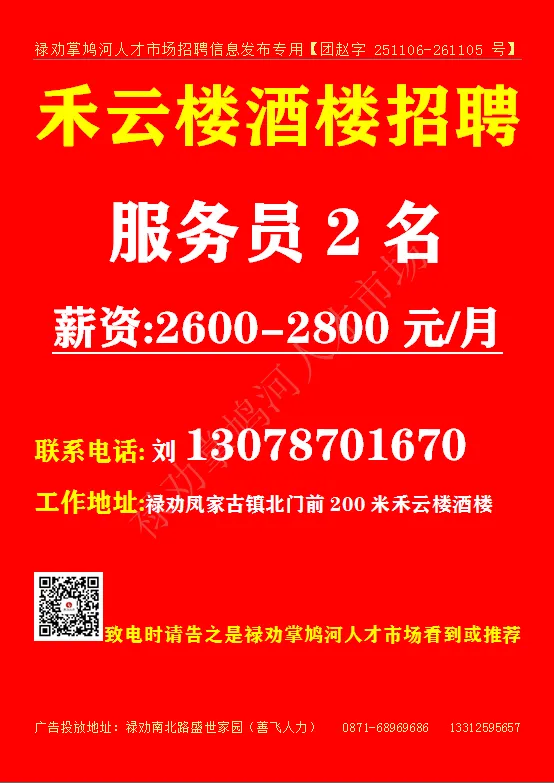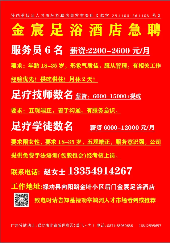 当前位置:首页>招聘>【禄武招聘】禄劝掌鸠河人才市场本地招聘第11期(关注公众号查询更多岗位)