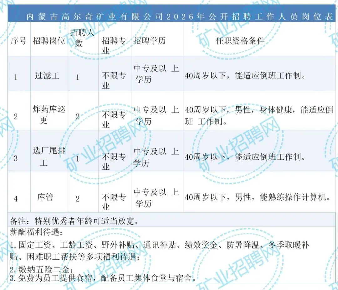 1.内蒙古高尔奇矿业有限公司对本次招聘工作委托第三方招聘公司组织实施。
