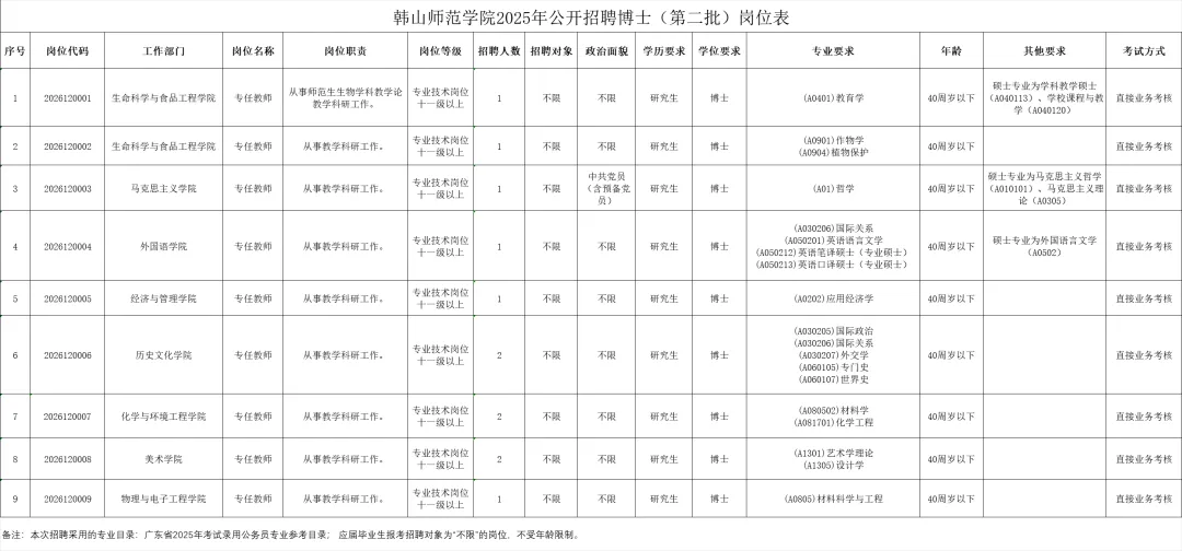 3.招聘岗位专业及代码参照《广东省2025年考试录用公务员专业参考目录》设置。报考人员不得报考所学专业代码与招考岗位专业代码不一致的岗位。所学专业未列入专业目录(没有专业代码)的,可选择招聘专业中相近专业报考,所学专业必修课程须与报考岗位要求的专业主要课程基本一致,并在资格审核时提供毕业证书、所学专业课程成绩单(须教务处盖章)、院校出具的课程对比情况说明及毕业院校设置专业的依据等材料。除专业目录有列出培养方向的专业外,其他毕业证上的专业名称后面以括号等形式列出的培养方向不能作为报考专业的依据。
