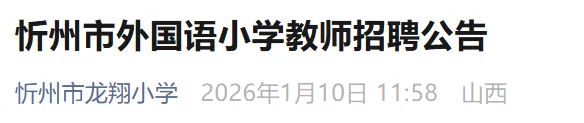 忻州市外国语小学(忻州市龙翔小学),是经中共忻州市委机构编制委员会批准设立(忻编发〔2025〕26号)的市直公办小学,隶属忻州市教育局。