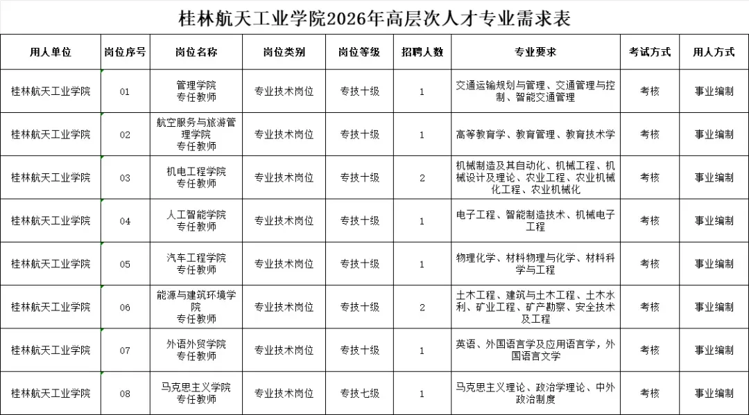 桂林航天工业学院2026年公开招聘高层次人才公告