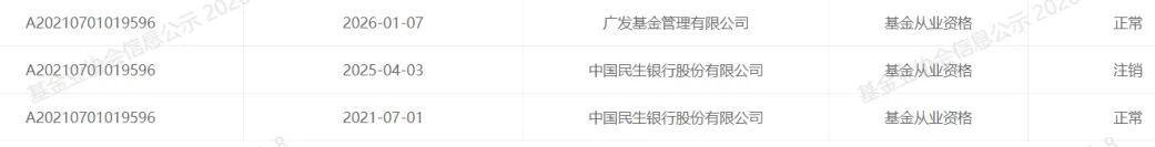 杨X,4月3日从民生银行离职,26年1月7日正式加入广发基金