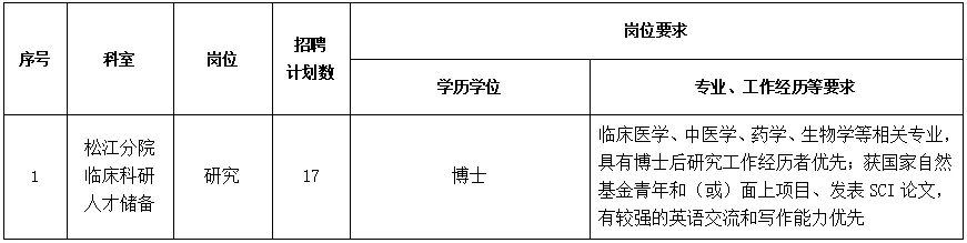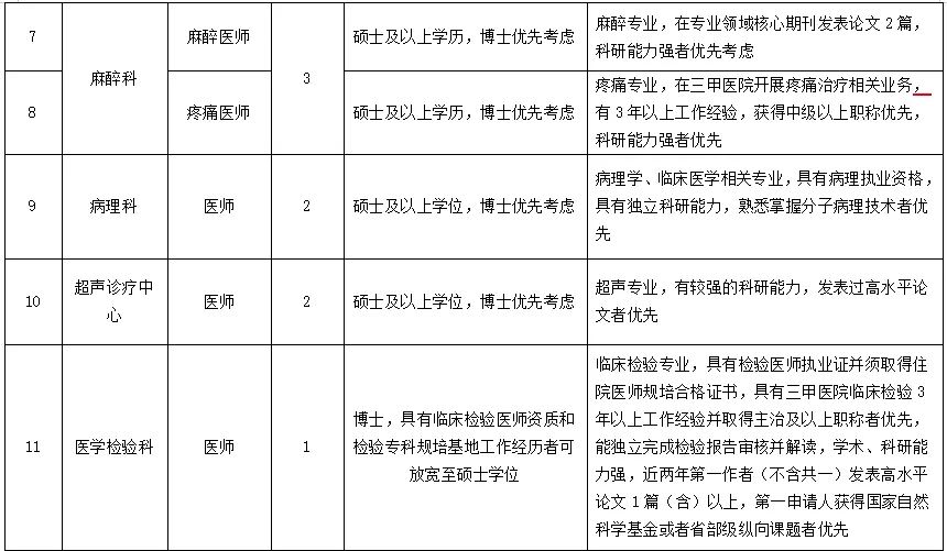 具有三甲医院工作经验,科研能力强者优先考虑。