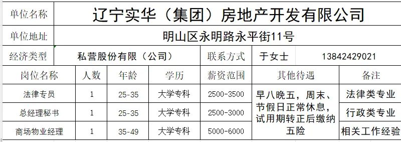 三、工作地点:沈阳市