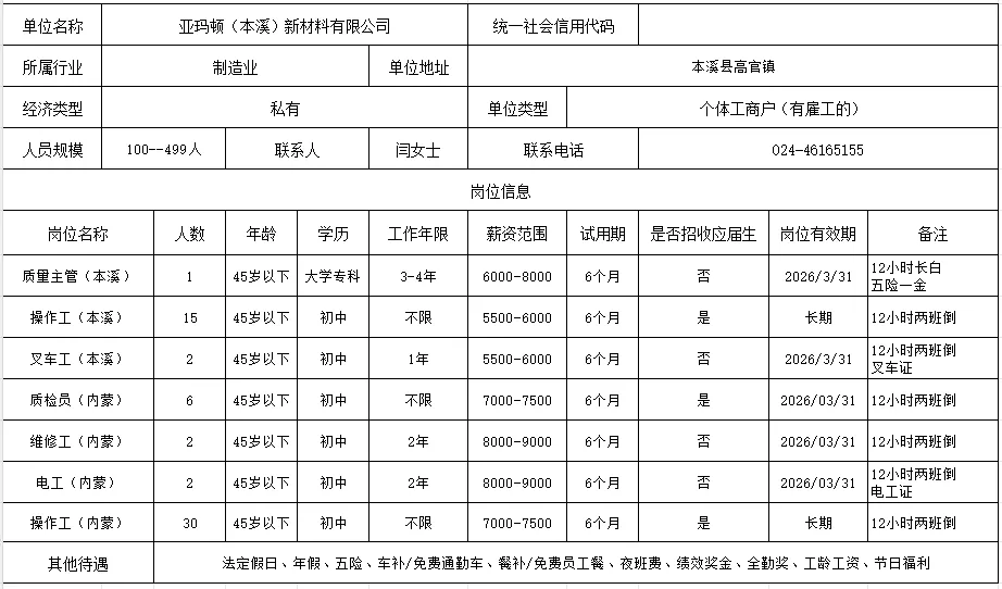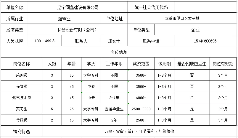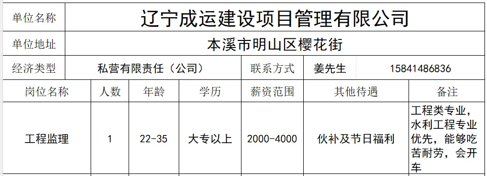 联系电话:张先生13125533468(更多招聘请看--本溪药都优惠信息 免费登记发布)