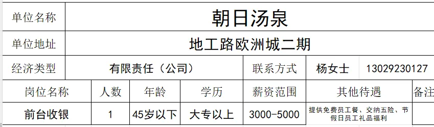 招聘:前台服务员(长期)