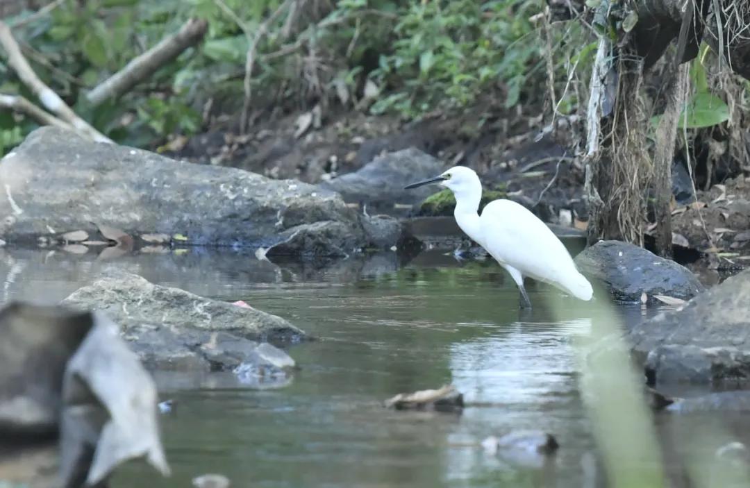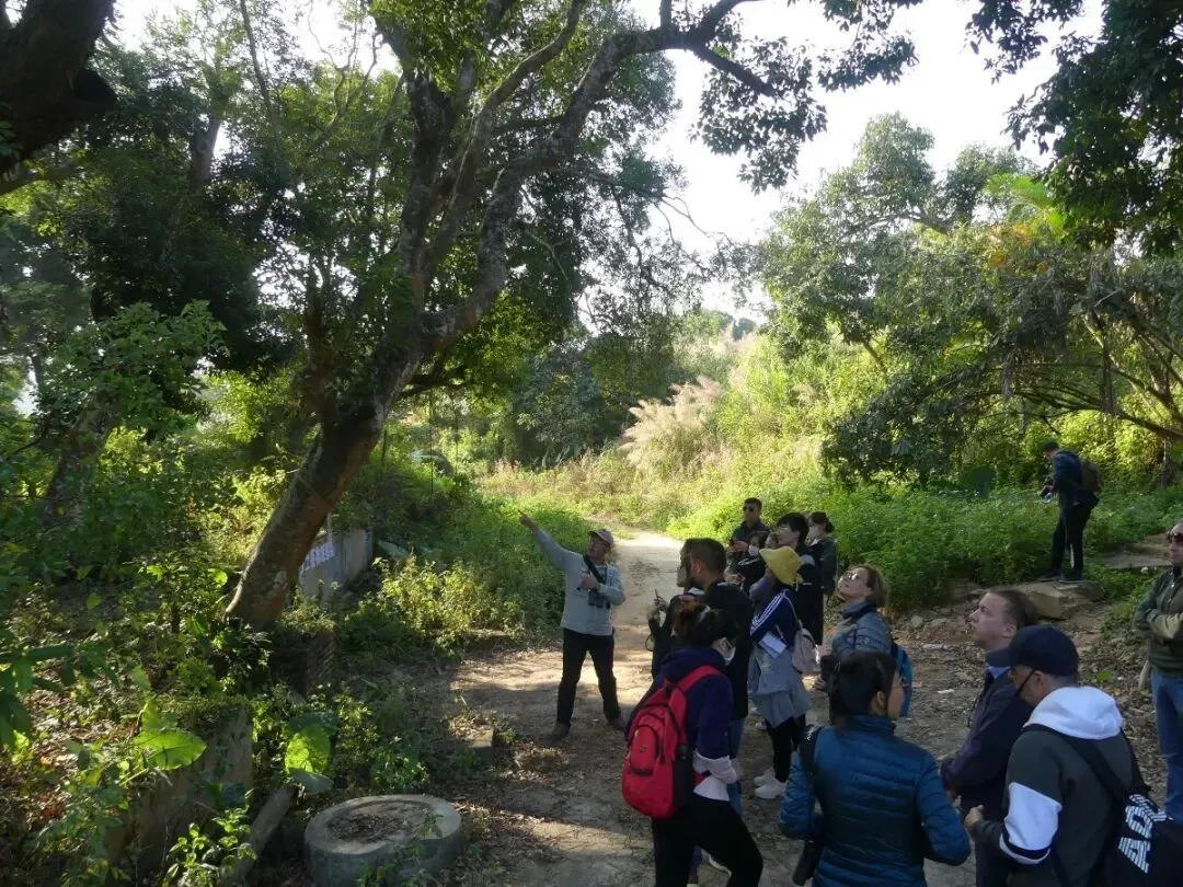 同行的生态科普专家南一方和黄秦,全程用英语和普通话为大家做双语导览和讲解。在2个半小时的研习径徒步中,大家时而饶有兴趣地观察着路旁憨态可掬的佛肚竹;时而屏气凝神聆听蜜蜂忙碌地在高大的树梢枝头采蜜歌唱;时而端起望远镜小心翼翼地观摩树梢的红耳鹎嬉戏打闹;时而津津有味地驻足欣赏白鹭屹立在河畔对“镜”梳妆……