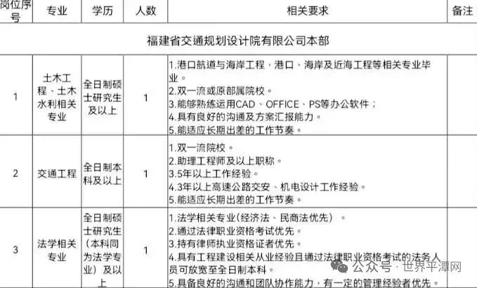 因工作需要,福建省交通规划设计院有限公司拟组织开展2026年度公开招聘工作,相关事宜如下: