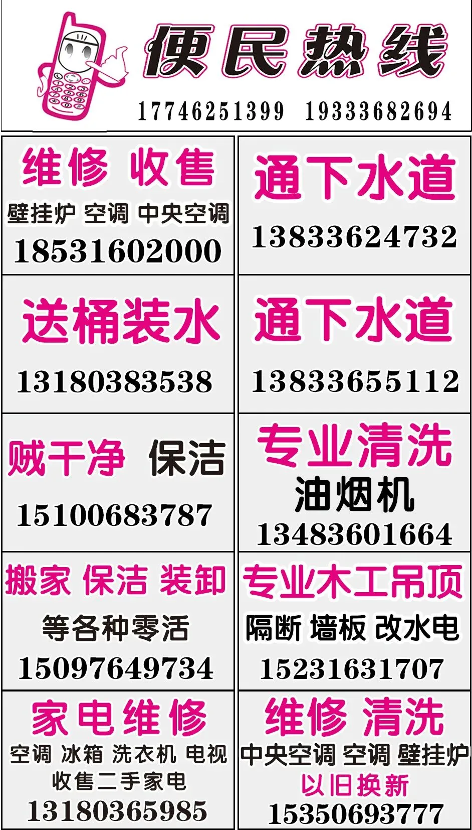 招聘:语音主持,全职男主播,18-35岁,新人手把手教学,保底4000元,月薪1-3万上不封顶,工资周结,管住,不卡颜和学历。电话:13231633620 15031799977丰盛置业招聘:保洁,55周岁以下,女,身体好,要求有工作经验,工作环境好,公休+员工餐。电话:19331638162