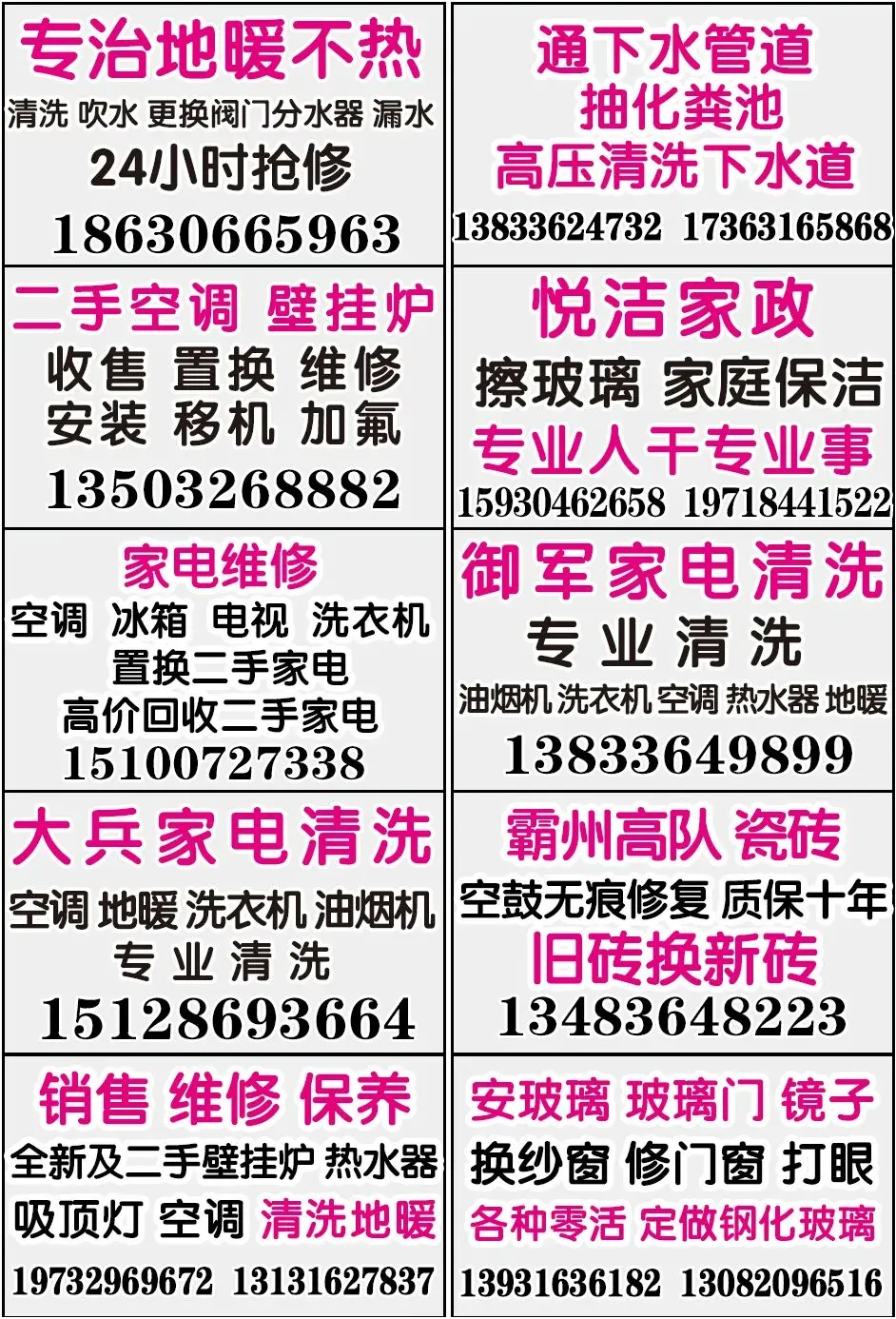 招聘:兼职保姆,霸州市裕华西道附近,每天收拾屋子洗衣服,有假期具体详情电联。电话:18519394620