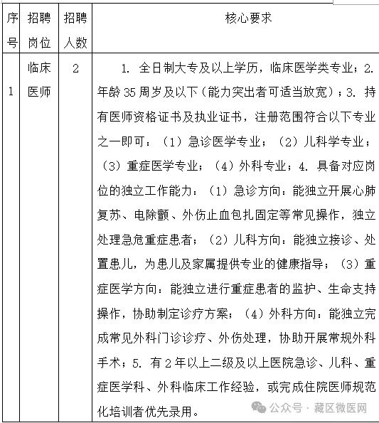 3. 身心健康,能适应岗位工作强度(急诊相关岗位需接受24小时值班值守);