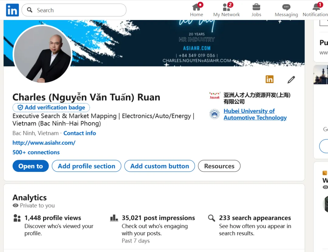 加我LinkedIn,给你链接点越南管理者的资源,我的follower超过80%都是越南籍。