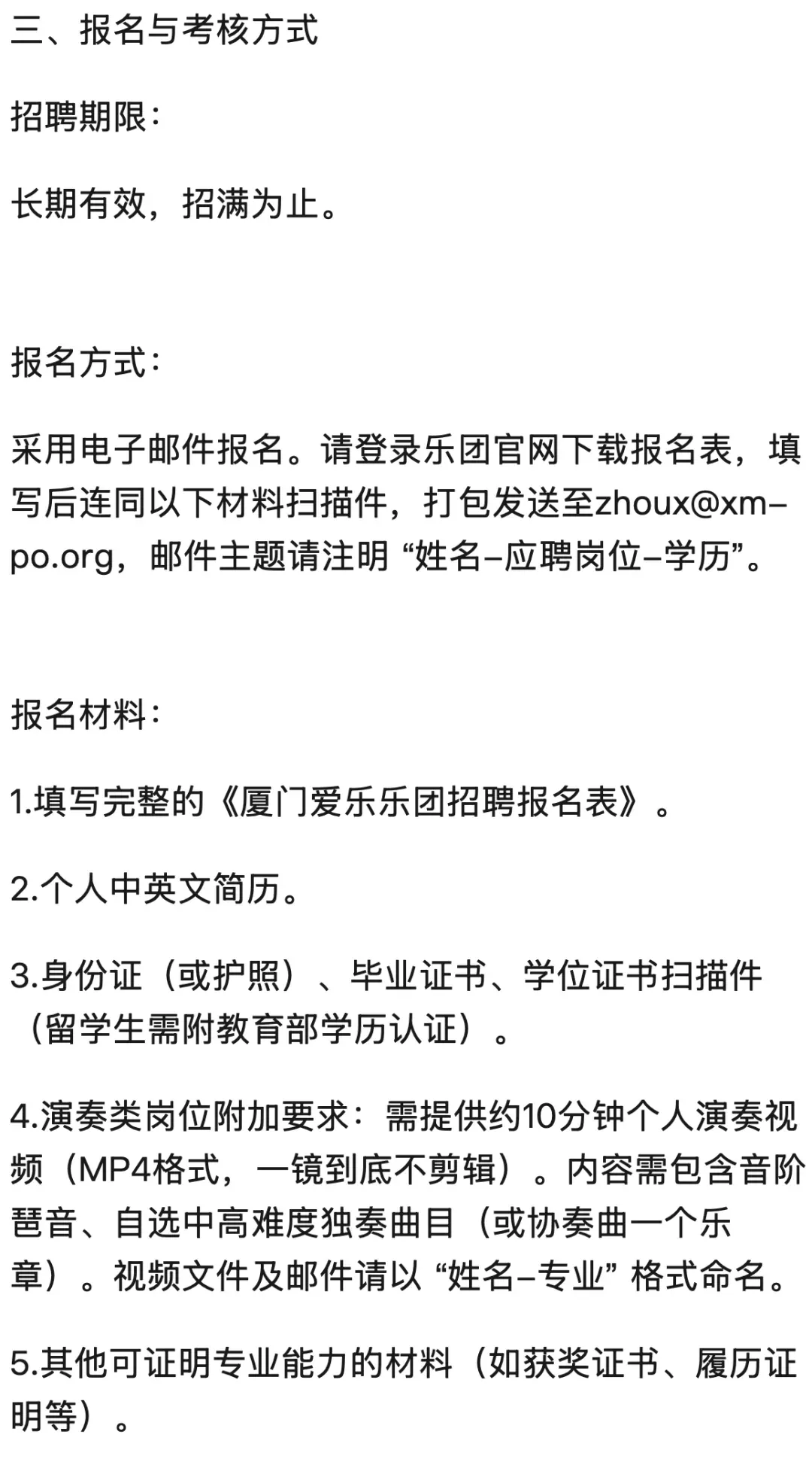 >招聘 | 厦门爱乐乐团招聘启事
