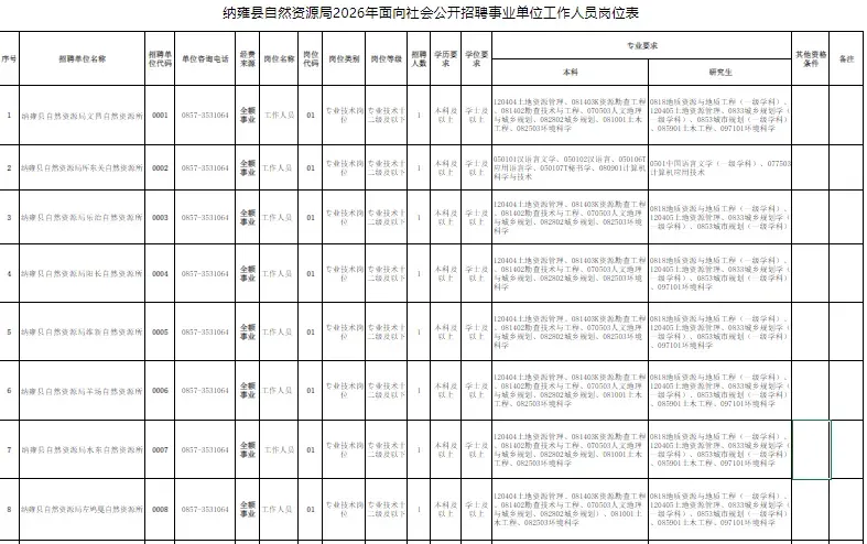 2026年毕节纳雍县自然资源局公开招聘事业单位工作人员简章