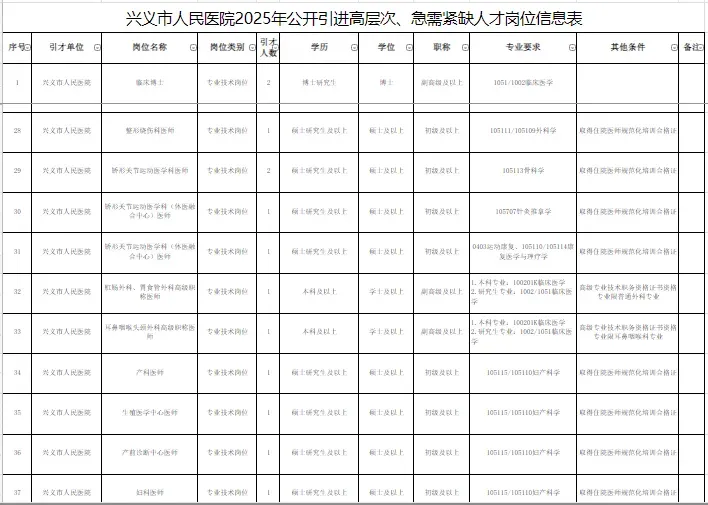2025年兴义市人民医院公开引进高层次、急需紧缺人才公告