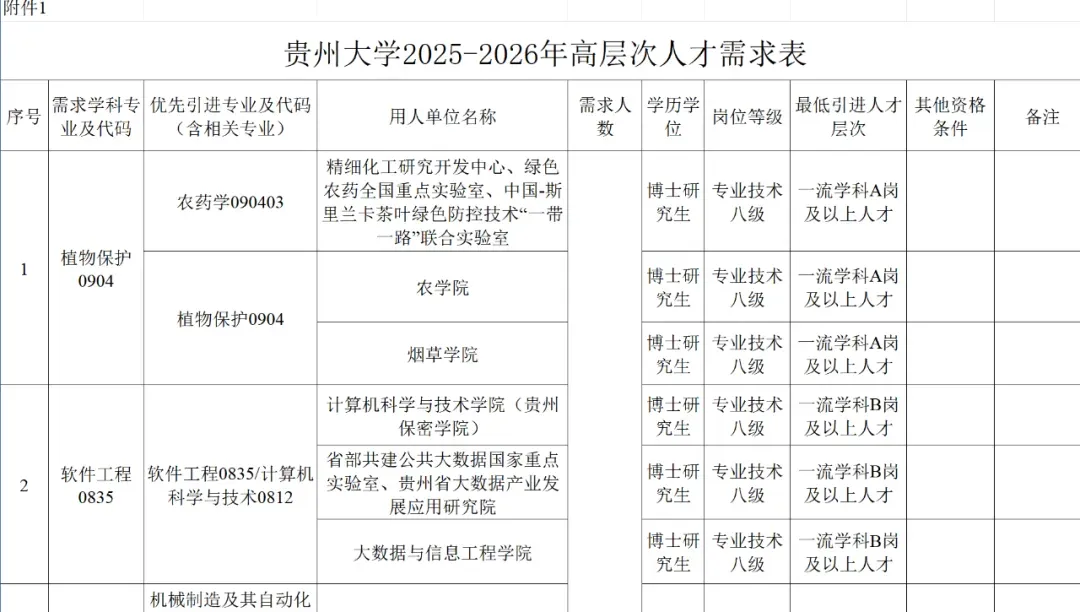 贵州大学2025-2026年高层次人才引进公告(一)