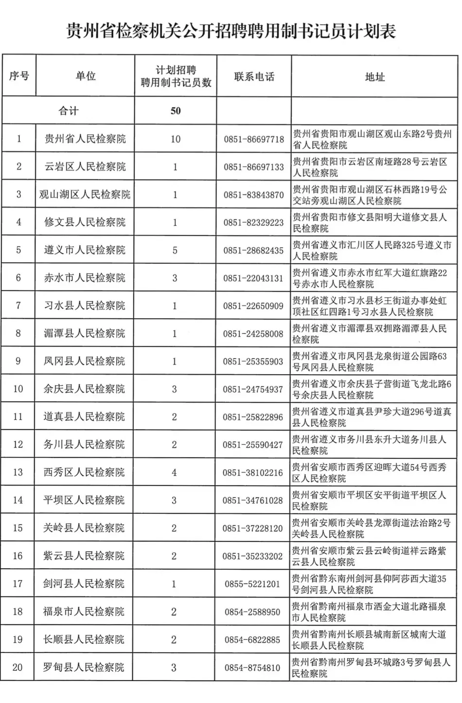 2025年贵州省检察机关公开招聘聘用制书记员公告