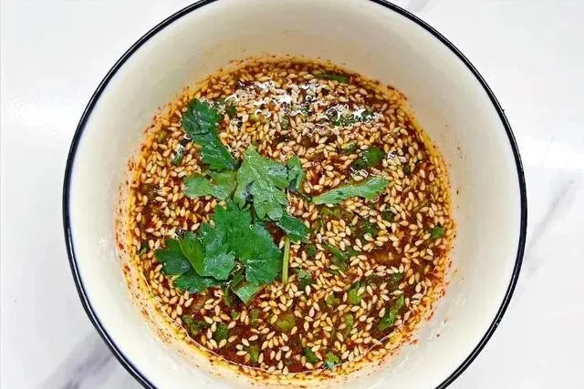 凉拌汁:2生抽2醋2凉开水1蚝油半份香油 , 再加蒜末白芝麻香菜辣椒粉。