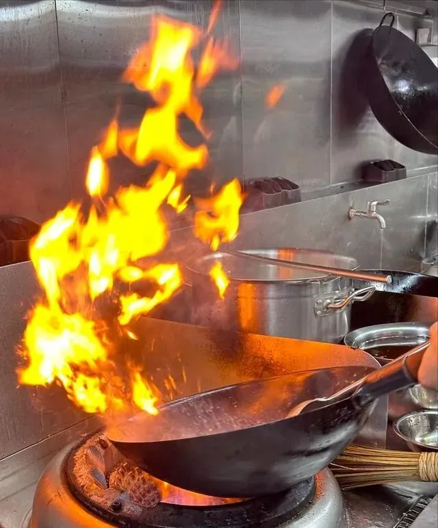 锅烧够烫 , 冒青烟再下菜 , 猛火快炒快出锅 , 这就是饭店炒菜香的秘密。