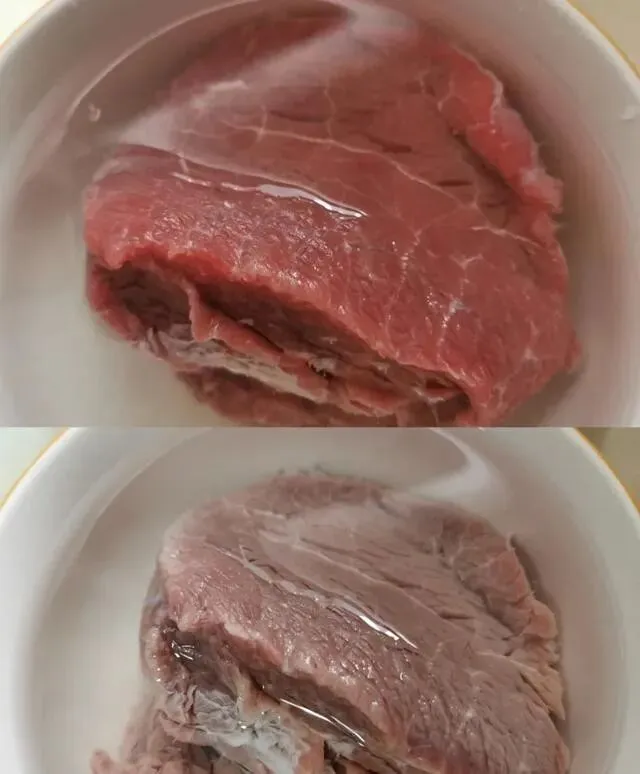 还有个冷知识 , 刚买回来的肉用冷水泡一泡 , 把血水泡出来 , 腥味少一半。