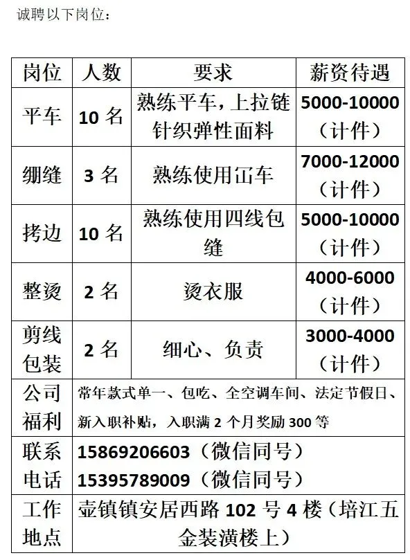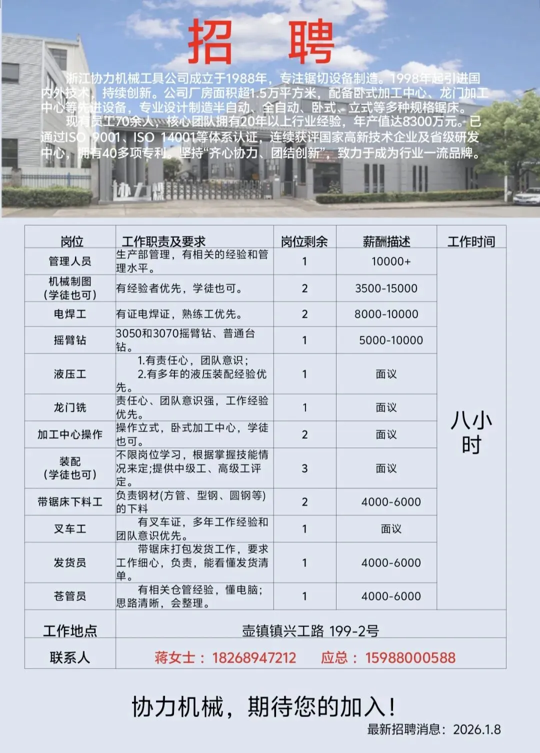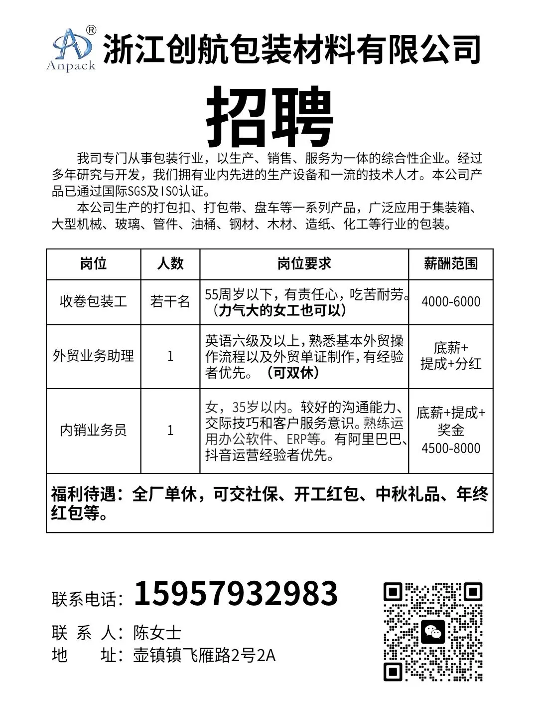 !凭借多年本地服务积淀,整合全镇优质企业资源,岗位覆盖工厂普工、办公文职、客服销售、管理运营等全领域,每日8:00海量岗位上新,壶镇热门职位应有尽有,让求职者足不出户刷遍壶镇好工作,精准匹配本地岗位需求,求职高效又省心,让企业快速触达本土优质人才,极速发布岗位、招人成本低、效率高,还能享受专属入驻指导!公司以靠谱服务打造壶镇高人气求职招聘阵地,成为壶镇人求职、企业招才的首选省心平台!