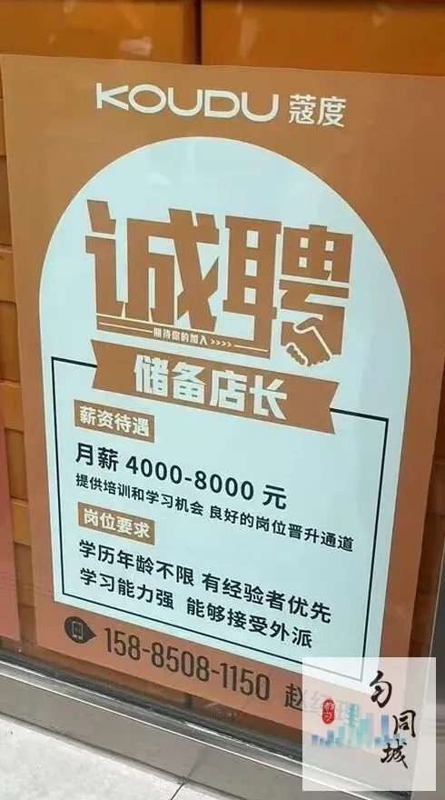 置顶都匀KOUDU蔻度诚聘储备店长薪资待遇月薪4000-8000 元提供培训和学习机会 良好的岗位晋升通道岗位要求学历年龄不限 有经验者优先学习能力强 能够接受外派158-****-1150 赵经理联系人:男**人