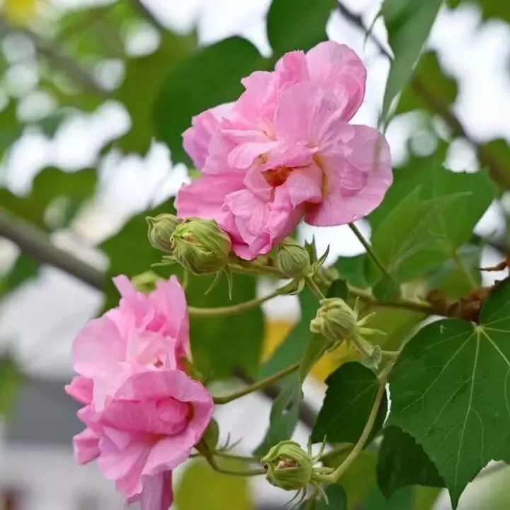 东邻槛外芙蓉花,初开粲粲如朝霞。