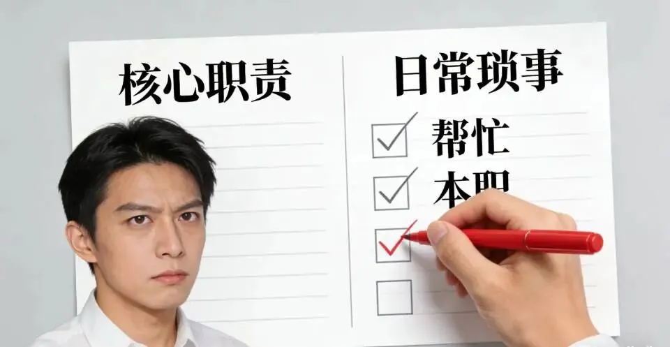 拿一张纸:左边写核心职责&价值产出,右边写“日常琐事”,系统性减少/移交右边事项。