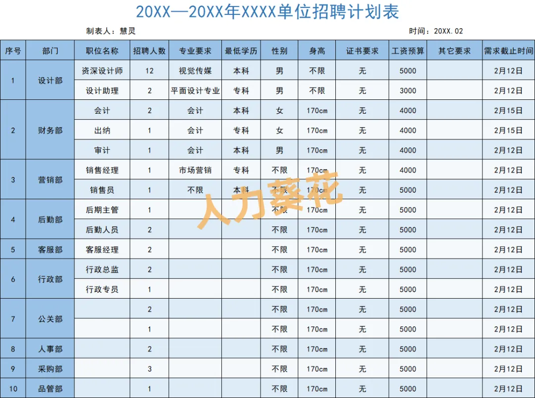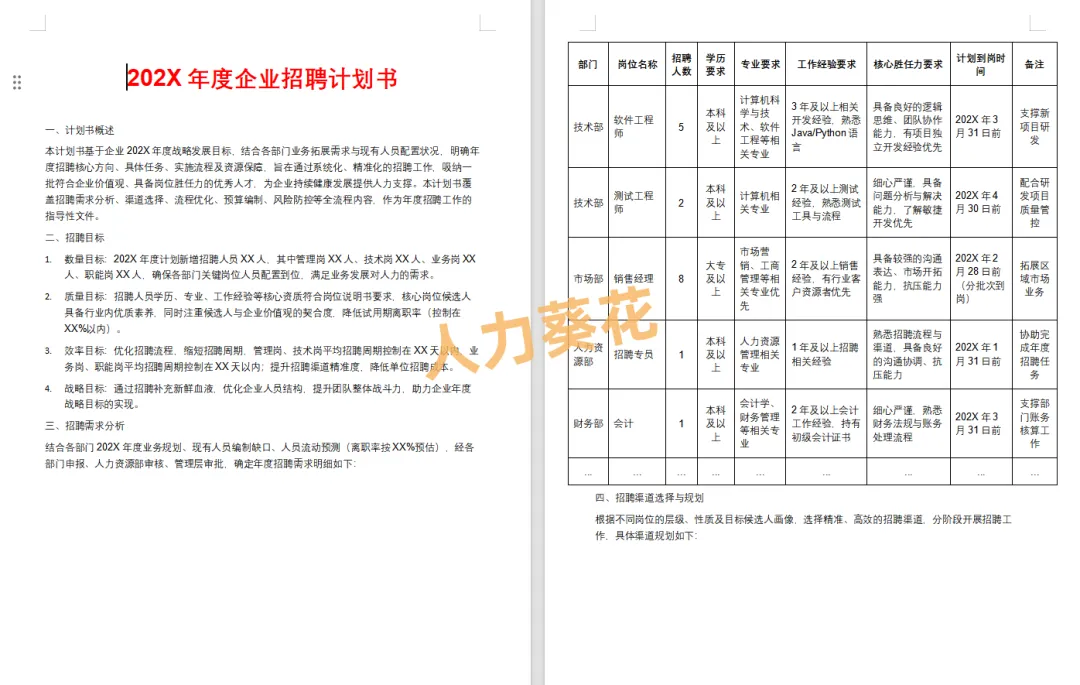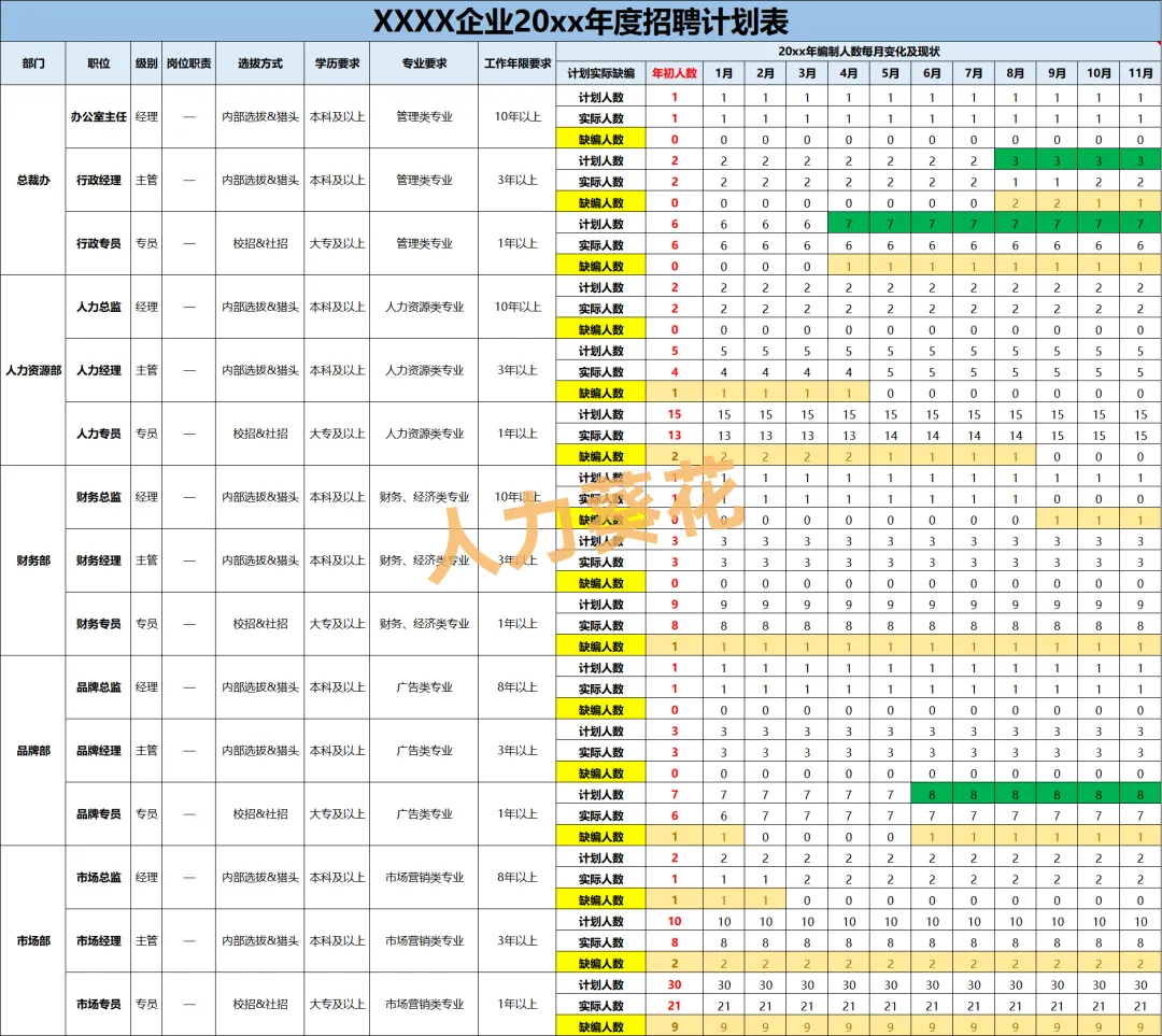 本套资料包含年度招聘计划、招聘计划excel.等,预览如下: