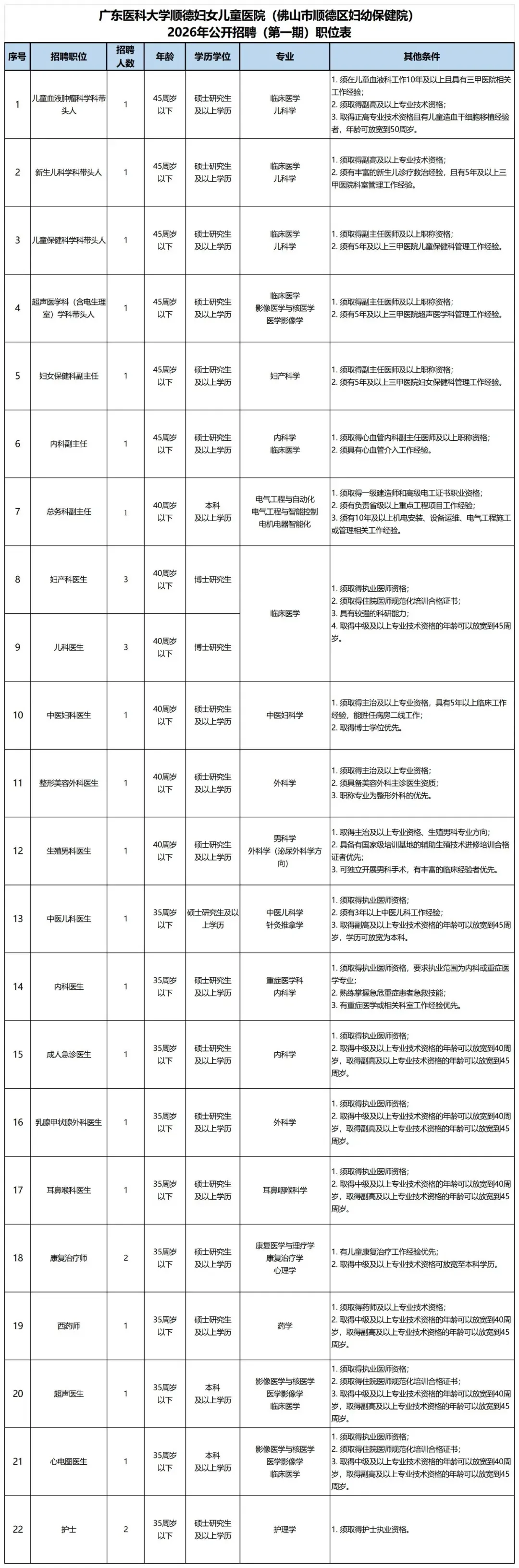 广东医科大学顺德妇女儿童医院是集医疗、保健、科研、教学为一体的三级甲等妇幼保健院,是顺德区内首家获省卫健委批准开展人类辅助生殖(试管婴儿)技术的医院,是广东省高等医学院校教学医院和广东医科大学直属附属医院。现因工作需要,拟面向社会公开招聘28名工作人员。