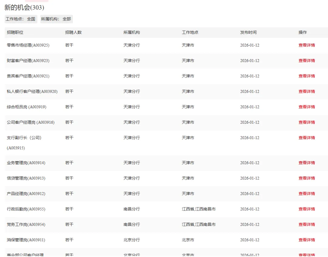 现根据业务发展的需要,中信银行进行社会招聘,具体岗位如下: