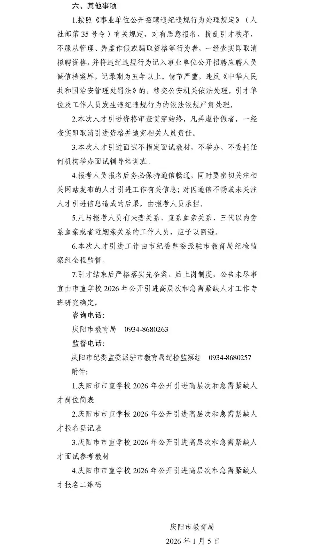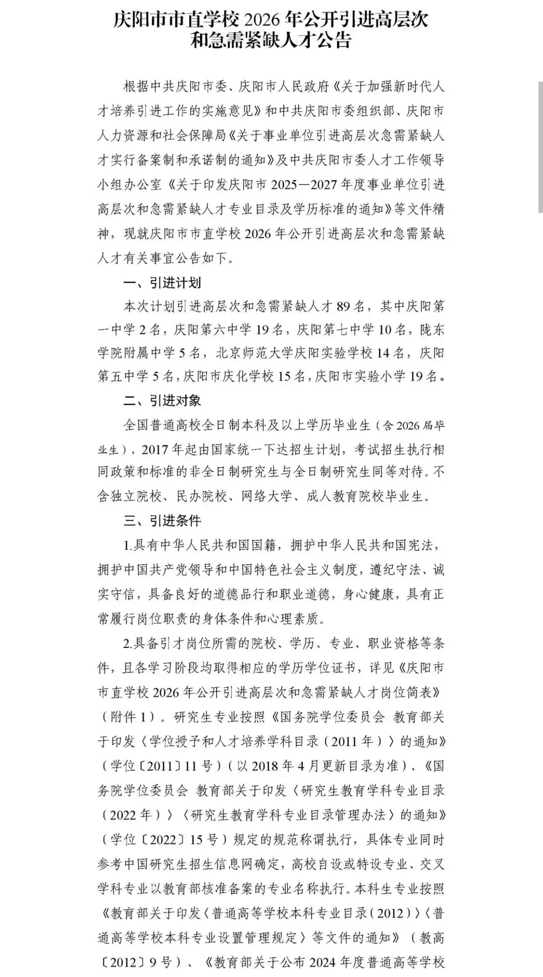 【招聘快讯】庆阳市市直学校2026年公开引进高层次和急需紧缺人才公告