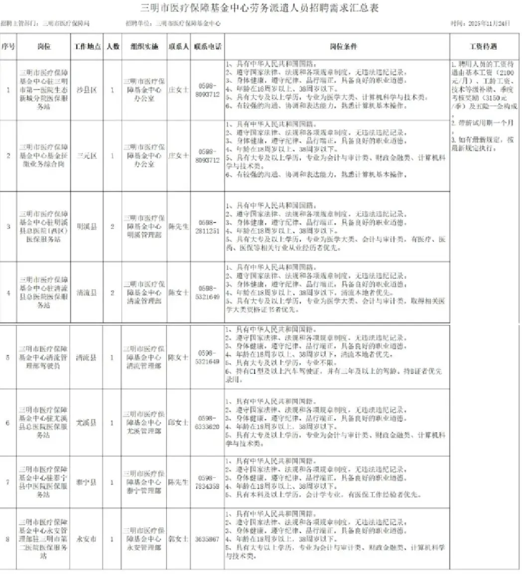 关于三明市医疗保障基金中心招聘工作人员的公告https://mp.weixin.qq.com/s/wnJMN8mw_cFYKK5jTV9Rjg?scene=25#wechat_redirect文