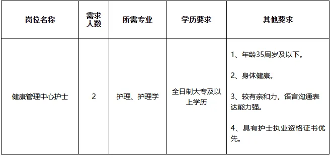 招聘职位:护士