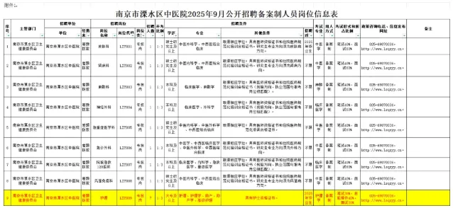 2.报名方式:现场报名。携带①身份证;②毕业证书(学位证书),在国(境)外取得学历学位的人员须出具教育部中国留学服务中心的学历学位认证证明;尚未取得毕业证书的国(境)内普通高校2025年毕业生还须提供《毕业生就业推荐表》;③岗位信息表中所需专业技术资格证书、执业证书、方向证明、规培证书或在培证明;④本人签字的《南京市溧水区中医院2025年9月公开招聘备案制人员报名表》。上述证件及相关材料均需交验原件并提供复印件。资格审核后,原件当场退还。