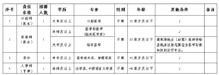 招聘职位:口腔科、影像科等