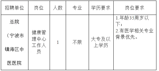 现场报名时间及地址:工作日早上8:00-11:30,下午1:30-5:00携带简历及相关证明材料至宁波市镇海区招宝山街道镇海区中医医院2号楼1219室。 联系电话:0574-86282726(董老师)